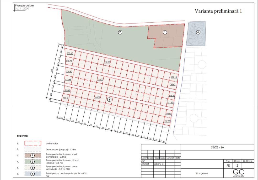 Planul Urbanistic Zonal prevede construcția pe terenuri sus-indicate cu suprafața de 13,5 ha a unui complex rezidențial. Planul Urbanistic Zonal prevede dezvoltarea localității prin construirea caselor de locuit, blocurilor locative, obiectelor comerciale, de prestări servicii, spații înverzite, spațiul stradal și căi pietonale, și amenajarea infrastructurii necesare.