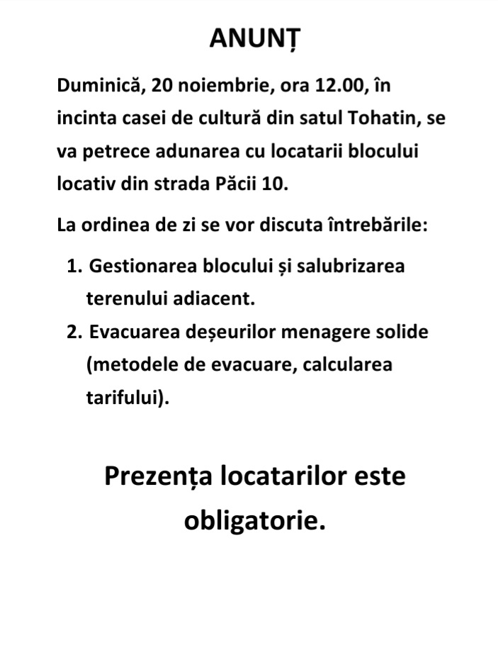 procese-verbale a Consiliului comunal Tohatin 2025