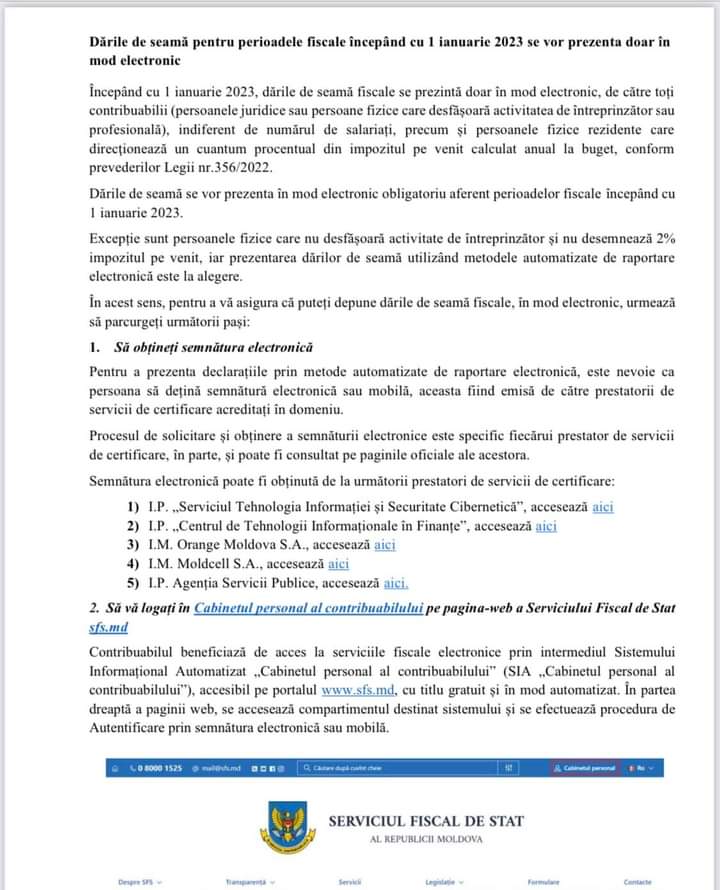 Dările de seamă pentru perioadele siscale începînd cu 1 ianuarie 2023