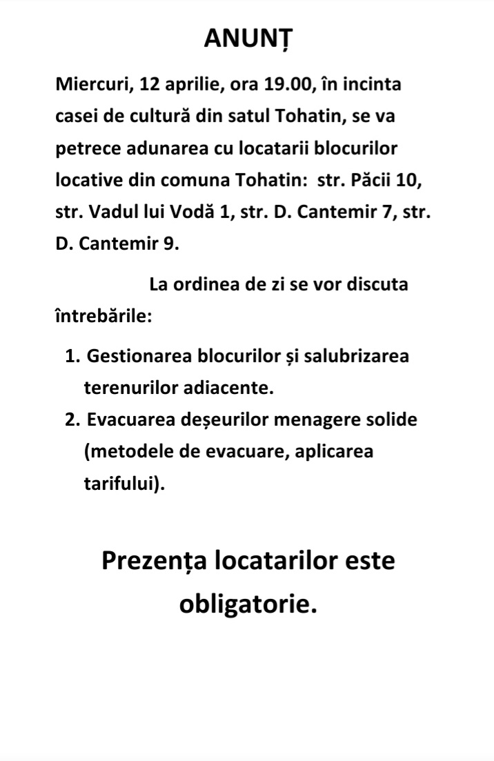 În atenția locatarilor 📣În atenția locatarilor 🏢 blocurilor locative din str-le: ❗🏢 Păcii 10; ❗🏢 Vadul lui Vodă 1; ❗🏢 D.Cantemir 7; ❗🏢D.Cantemir 9. 2023-04-11 intarc