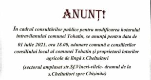 ❗Se aduce la cunoștința locuitorilor comunei Tohatin Anunțul 📢 privind organizarea consultării publice a proiectului de decizie „Cu privire la modificarea hotarului intravilanului comunei Tohatin și aprobarea Planului Urbanistic Zonal „.👇
