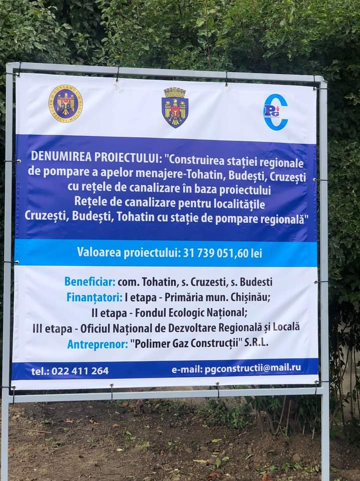 9 991 150 lei pentru prelungirea lucrărilor de construcție a rețelelor de canizare și a stației de pompare a apei menajere pentru localitățile  Tohatin, Cruzești, Budești.